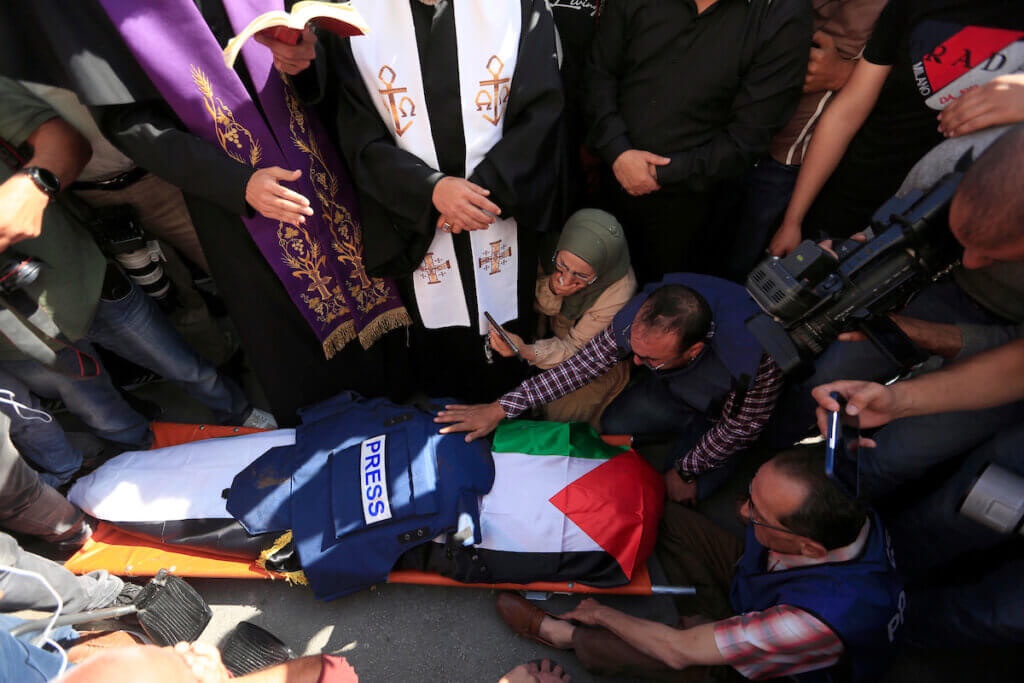 In the army’s preliminary investigation, soldiers reportedly testified that they “did not see” Abu Akleh, and were aiming their fire at Palestinian gunmen who were allegedly “nearby.”