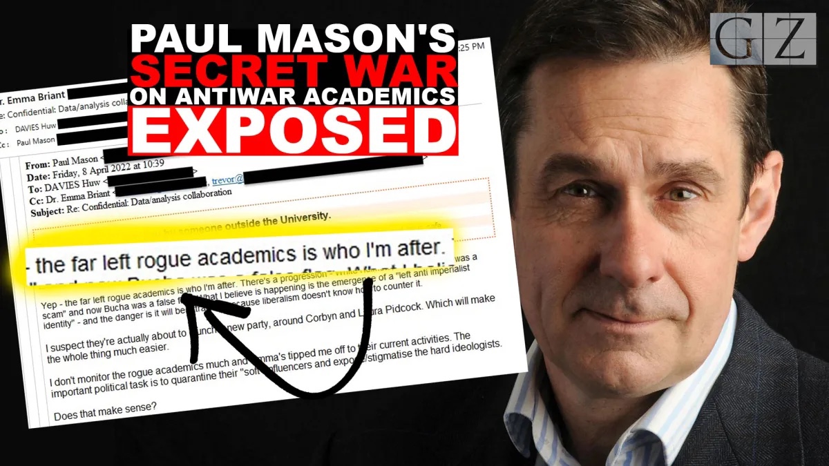 “In the latest installment of The Grayzone’s ongoing investigation into the anti-democratic, security state-influenced activities of Paul Mason, we look at how one of Britain’s most prominent alleged left-wing journalists and an ever-expanding cast of covert helpers targeted scholars who dared challenge establishment narratives on the conflict in Ukraine.