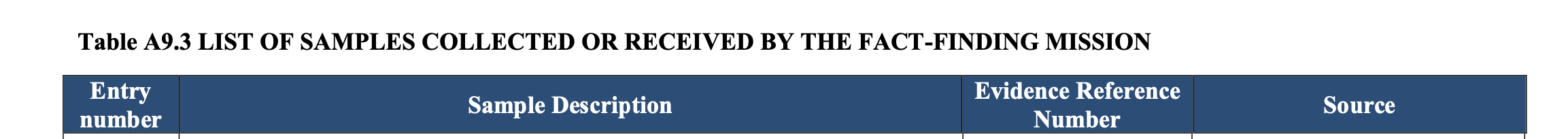 The sample now said to contain the incriminating TeCP is conspicuously absent in the OPCW’s March 2019 final report on Douma. A full list in that report of the “samples collected or received by the Fact-Finding Mission” makes no mention of the IIT’s newfound sample.