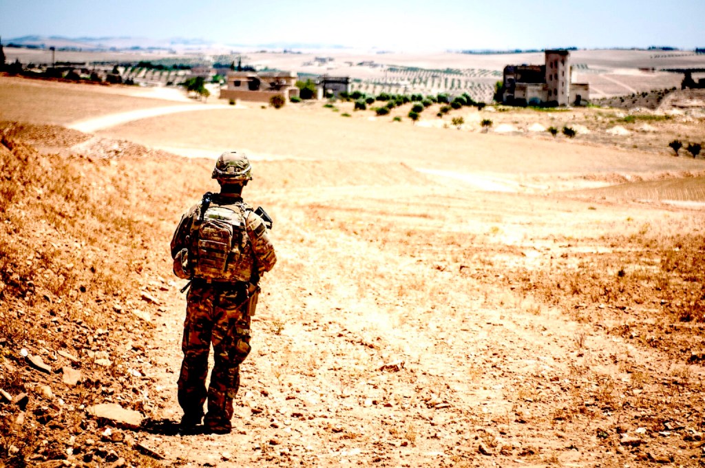 U.S. Green Berets and their partner force, the Maghaweir al-Thowra, MaT, during a joint patrol mission near At-Tanf Garrison, Syria, April 29, 2020. (U.S. Army/ William Howard)