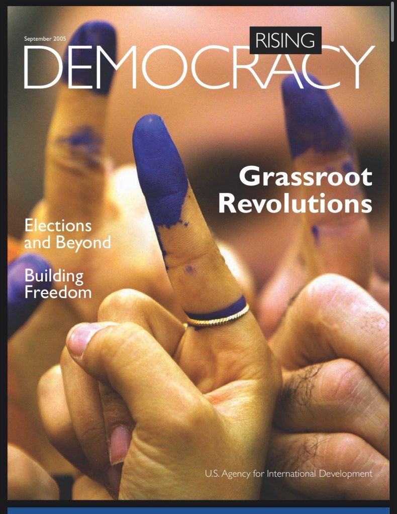 The next year, USAID published a slick magazine, Democracy Rising, bragging extensively about how it and NED were fundamental to a wave of revolutions in Georgia, Kyrgyzstan, Lebanon, Yugoslavia, and elsewhere during the first years of the 21st century. Fast forward to February 2014, and Ukraine’s government once again fell victim to an Endowment-orchestrated coup, in the form of the Maidan ‘revolution’. Yet, the media either ignored the irrefutable US role in fomenting the upheaval or dismissed the proposition as “Russian disinformation” or conspiracy theory.